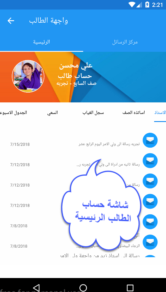 حزمة برامجيات كاملة لادارة مركزك التعليمي وتسهيل التواصل الذكي بين الطلبه واولياء الامور الهئية التدريسية.. حزمة تطبيقات الهاتف الذكي للكادر التدريسي تمكن كل محاضر ضمن مؤسستك التعليمية من الوصول الى حسابات الطلبه والصفوف المسندة اليه وسرعة ارسال الاشعارت ورسائل البريد الالكتروني المباشرة عبر اجهزة الهاتف المحمول الى كل من اولياء الامور والطلبه ايضا على حد سواء.